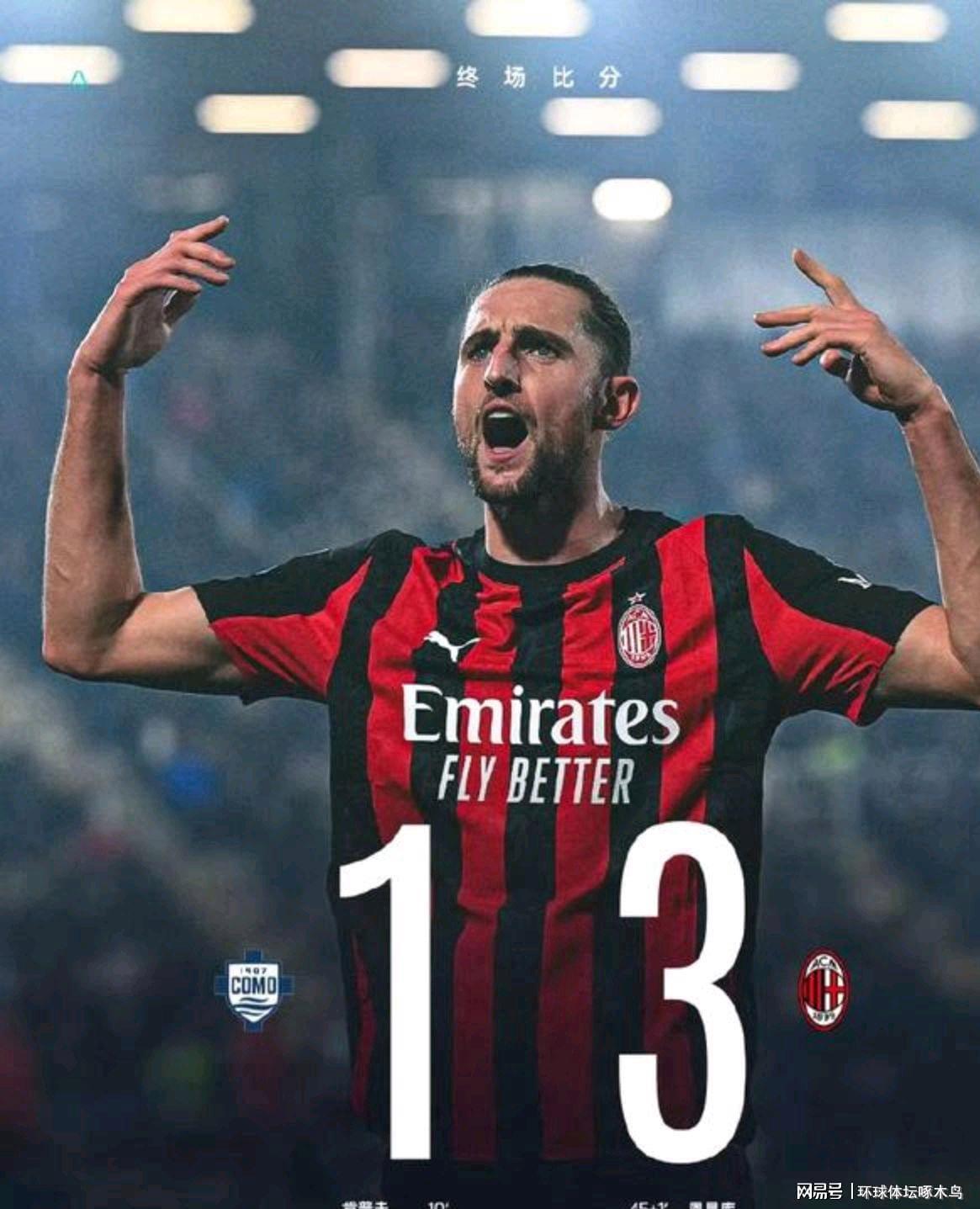 开云体育-意甲第16轮:科莫主场1-3不敌AC米兰 红黑军团紧追国米