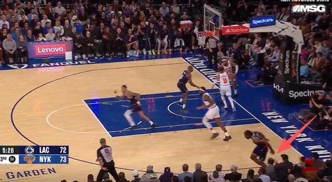 据快船随队记者Justin Russo报道,在昨天对阵尼克斯的比赛中,莱昂纳德撞到了一位坐在场边的球迷,导致右脚踝扭伤。